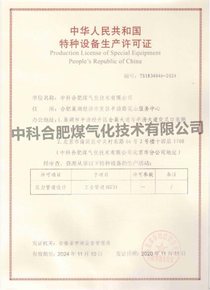 11月11日,中科合肥煤氣化技術(shù)有限公司(以下簡(jiǎn)稱“中合氣化”)成功取得由安徽省市場(chǎng)監(jiān)督管理局頒發(fā)的壓力管道設(shè)計(jì)許可證書,標(biāo)志著中合氣化正式具備壓力管道相關(guān)施工圖設(shè)計(jì)資質(zhì),為公司業(yè)務(wù)拓展提供了有力保障。